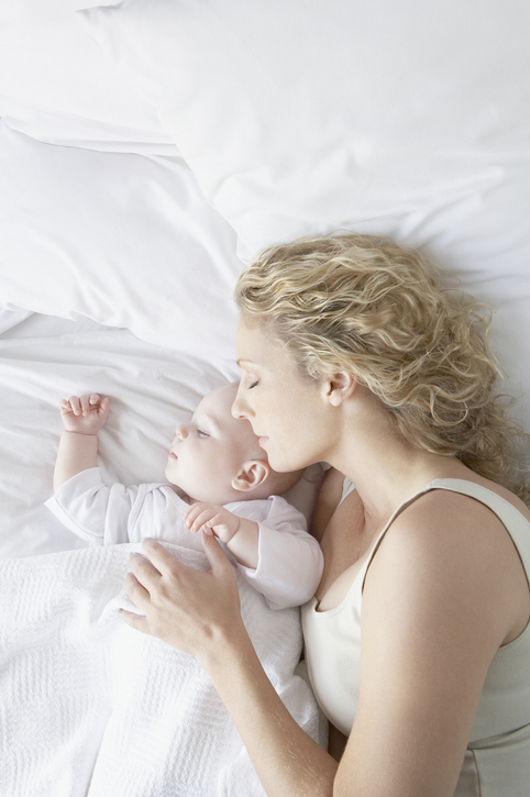 Since the very beginning of time mothers and babies have been sleeping together, with out shared sleep the human race could not have survived. Babies would have frozen to death or been carried off by predators if they hadn't. Did you know night time is easier with a breastfeeding baby. Babies should be kept close to mom at night for easier breastfeeding. Either in a bedside co-sleeper, in your bed if you have properly prepared for safe sleep or at the very least in a crib in your room, not down the hall. A safe sleeping environment can take many forms. But if it happens to be your bed, take a few simple precautions. Fluffy bedding or pillows and blankets should be kept away from baby. Baby should not be placed on the outside of the bed, too prevent falls. Make certain that the top of the mattress doesn't have a space baby could become trapped in, like wise for the mattress foot and sides. Studies show that infants who sleep in close proximity of their mothers are at a greatly reduced risk for SIDS.